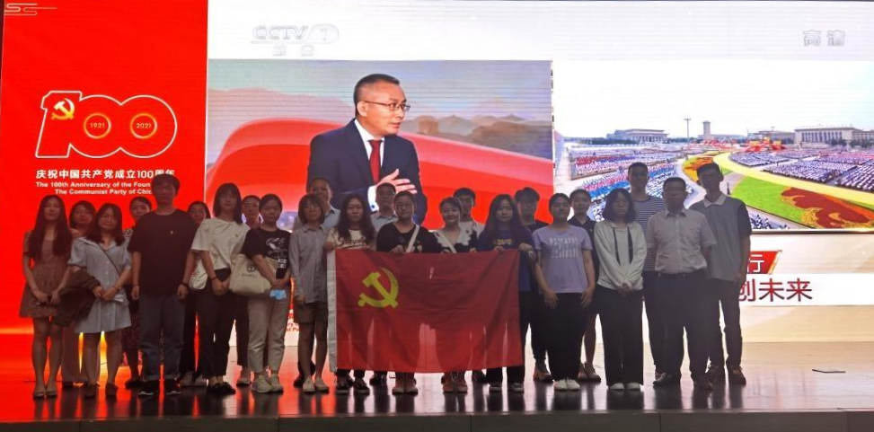 7月1日上午8时,庆祝中国共产党成立100周年大会在北京天安门广场隆重举行。中共中央总书记、国家主席、中央军委主席习近平发表重要讲话。马院师生30余人在北外国际大厦大礼堂集体收看了庆祝中国共产党成立100周年大会直播实况,认真聆听了习近平总书记发表的重要讲话。