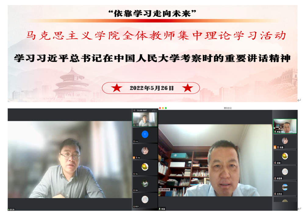 5月26日上午,beat365手机版官方网站举办全体教师集中理论学习活动,专题学习习近平总书记在中国人民大学考察时的重要讲话精神,活动由教工党支部书记张曼主持,人事处处长刘博然参加学习活动。