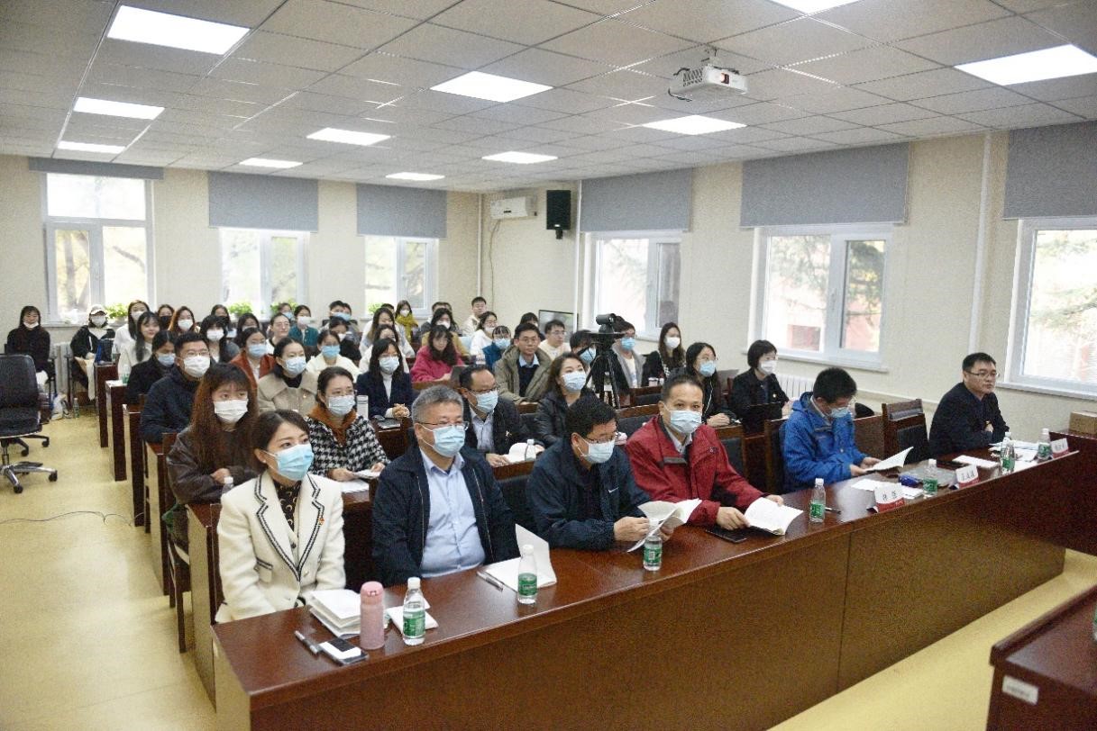 党总支副书记、院长韩强作题为《全面准确理解党的二十大精神》的主旨报告,强调根据《中共中央关于认真学习宣传贯彻党的二十大精神的决定》要求,学习领会党的二十大精神,必须坚持全面准确,深入理解内涵,精准把握外延。韩强从为什么学、学什么、怎样学三个方面出发,结合党的二十大报告,分享了学习的心得体会,突出强调了学习贯彻党的二十大精神的工作重点:一是深刻领会党的二十大的主题。二是深刻领会过去5年的工作和新时代10年的伟大变革。三是深刻领会开辟马克思主义中国化时代化新境界。四是深刻领会新时代新征程中国共产党的使命任务。五是深刻领会中国式现代化的中国特色和本质要求。六是深刻领会社会主义经济建设、政治建设、文化建设、社会建设、生态文明建设等方面的重大部署。七是深刻领会教育科技人才、法治建设、国家安全等方面的重大部署。八是深刻领会国防和军队建设、港澳台工作、外交工作等方面的重大部署。九是深刻领会坚持党的全面领导和全面从严治党的重大部署。
