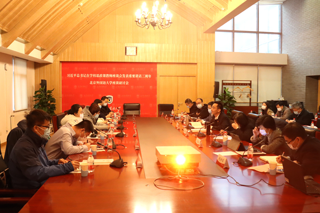 在习近平总书记发表重要讲话三周年之际,beat365手机版官方网站召开贯彻落实思想政治理论课教师座谈会精神研讨会。党委副书记苏大鹏出席会议,会议由beat365手机版官方网站院长韩强主持。