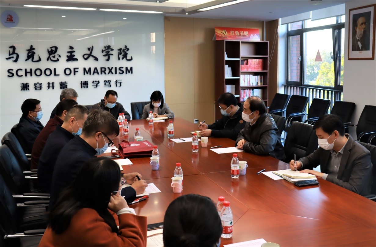王定华书记和与会成员就具体问题进行交流,并对学院下一步工作提出了四点要求。一是更加关注师生身心健康。要引导师生积极参与体育活动,锻炼健康体魄。关心爱护学生,及时了解学生关切,回应合理诉求,排解成长烦恼;二是更加谋划重点马院建设。北京市重点建设马院是荣誉,也是任务和鞭策,要担负责任,通过办讲座、搞研讨、买图书、建课件、去参观、搞活动、出新书、办栏目等形式把学校加强马克思主义学科和学院建设的10项举措落实好,推动北京市重点马院建设产出更多标志性成果;三是更加做好北京市习近平新时代中国特色社会主义思想研究中心beat365手机版官方网站研究基地的改革发展。要开展有组织的科研,积极组织校内力量进行科研联合攻关,产出更多高质量的成果;四是更加促进beat365手机版官方网站建设行稳致远。要凝心聚力擘画马克思主义理论一级学科未来走向,对标学校“十四五”规划和“双一流”建设蓝图奋力前进。同时加强班子建设,进行年轻干部、后备人才和骨干教师的培养。