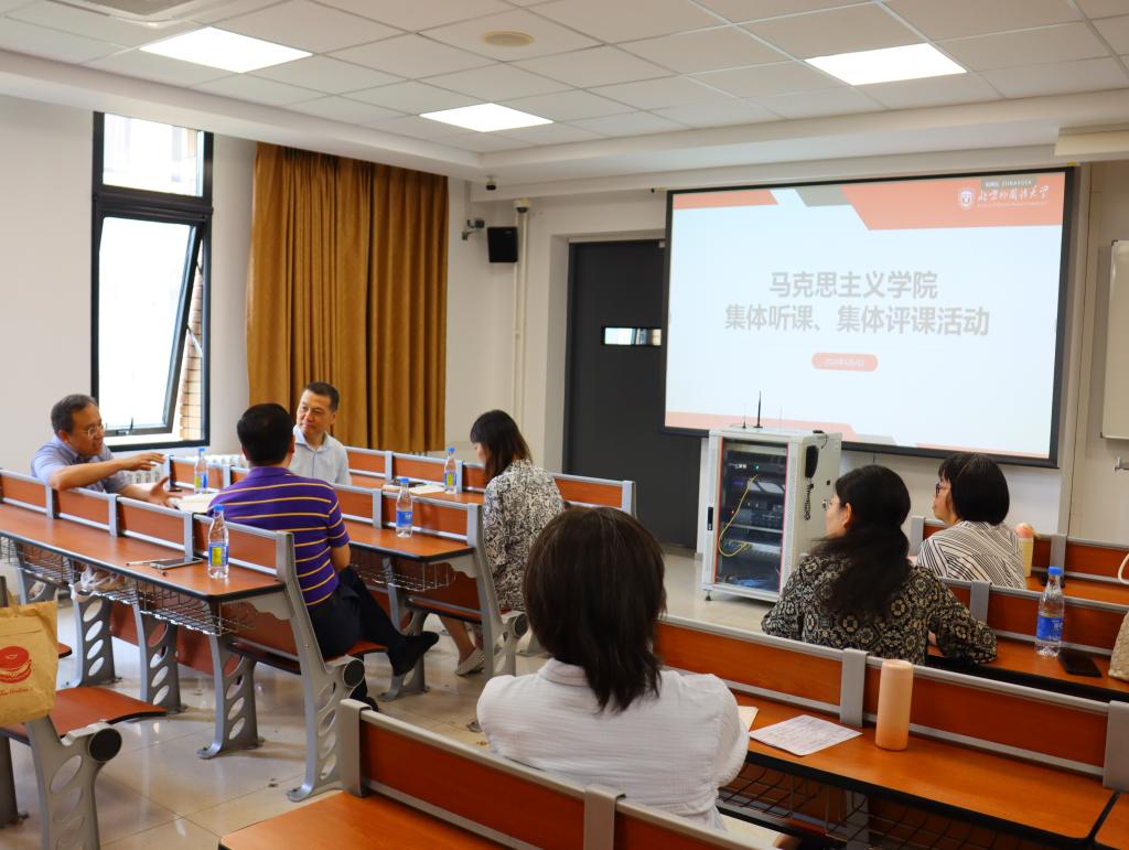 6月4日,为贯彻习近平总书记对学校思政课建设作出的重要指示精神,进一步提升思政课教学水平,beat365手机版官方网站在逸夫楼410教室举行了有组织教学暨集体听课、集体评课活动。校党委常委、副校长贾德忠、beat365手机版官方网站院长韩强、副院长王曼倩、“毛泽东思想和中国特色社会主义理论体系概论”教研室全体教师参加活动。