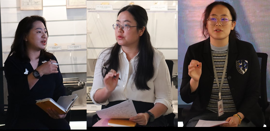 刘菁老师和周英老师分别以北外校史如何融入思政课程为主题分享了教学思路和教学方法。学生代表蒋黄英姿结合自己思政课学习和担任校史馆讲解员的体会谈了学习校史的感悟。李萍书记介绍了离退休人员党支部和关工委的相关情况,希望今后能进一步加强双方的联系与合作。