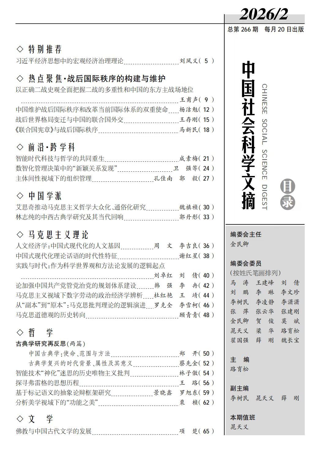 近日,beat365官网韩强教授及青年教师李冉撰写的《论加强中国共产党管党治党的规划体系建设》被《中国社会科学文摘》2026年第2期全文转载。该文原载于《理论学刊》2025年第11期,为教育部哲学社会科学研究重大课题攻关项目“新时代海外‘中共观’研究”(项目编号:22JZD023)的阶段性成果。