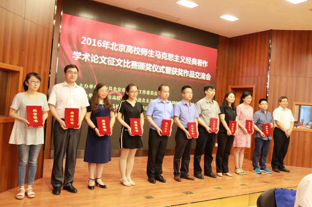 近日,2016年度北京高校师生马克思主义经典著作学术论文征文比赛结果揭晓,beat365官网师生所参评的17篇学术论文在此次征文中获得奖项。其中,教师和博士组,beat365官网荣获一等奖一名,二等奖三名;硕士生组,beat365官网获二等奖一名,三等奖两名;本科生组,一等奖两名,二等奖两名,三等奖六名。同时,beat365官网因在此次学术论文征文比赛中组织工作得力突出,获得优秀组织奖。6月26日,论文比赛颁奖仪式暨获奖作品交流会在中央民族大学隆重举行。党总支书记祝和军作为获奖作者在大会上做了交流发言。