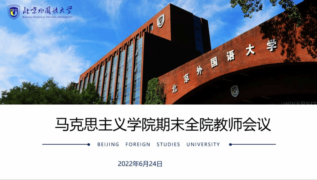 韩强通报了学院巡视整改完成情况,并从思政课教学、科研、人事工作等方面对本学期工作进行总结。在思政课教学方面,学院较好地完成了春季学期教学任务;协调教务处对教学评价指标体系进行了调整;同时探索用外语讲授《形势与政策》,打造教学特色;学院教师在课堂教学、实践教学方面获得多项荣誉。学术科研方面,科研成果数量与质量有所突破,多名青年教师的博士论文修订、出版工作正在进行;《当代中国的世界影响力》第2、3专辑即将出版;北京市习近平新时代中国特色社会主义思想研究中心重大项目成功立项。人事工作方面,2022年教学科研岗位教师招聘圆满结束,校内思政课教师调动基本完成;下一步将面向新入职教师实施青年教师成长导师制度。