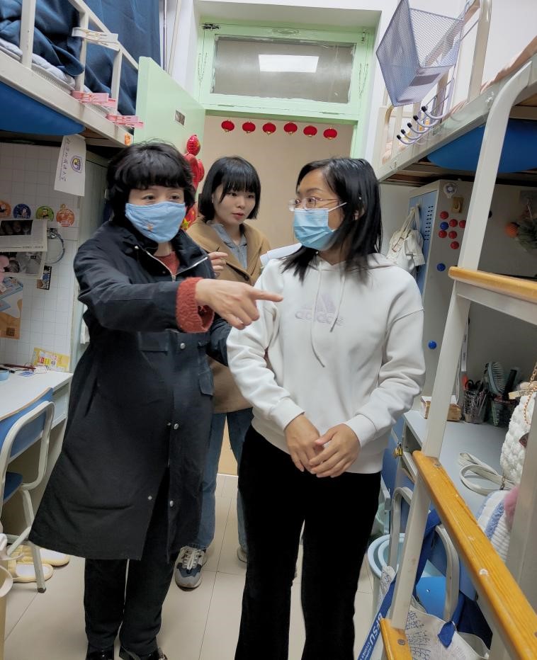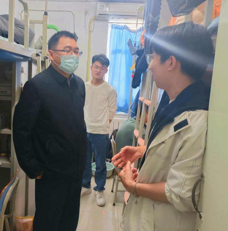 近日,为加强宿舍安全管理,排查宿舍安全隐患,营造良好的学习生活环境,beat365手机版官方网站党总支书记祝和军老师、学生辅导员刘珊珊老师、办公室孟蔓老师带队深入学生宿舍走访慰问,了解学生宿舍基础设施、环境卫生、消防安全情况,并与同学们亲切交流。