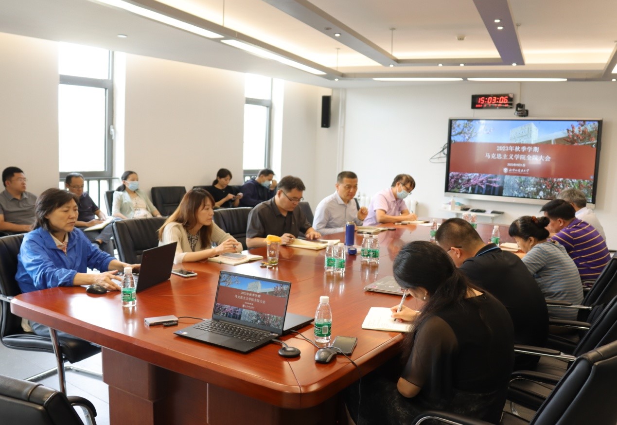 院长韩强传达beat365手机版官方网站2023年秋季学期工作部署会会议精神,布置新学期学院工作。着重强调要做好思政课教学、学科建设、教学管理等方面的工作。
