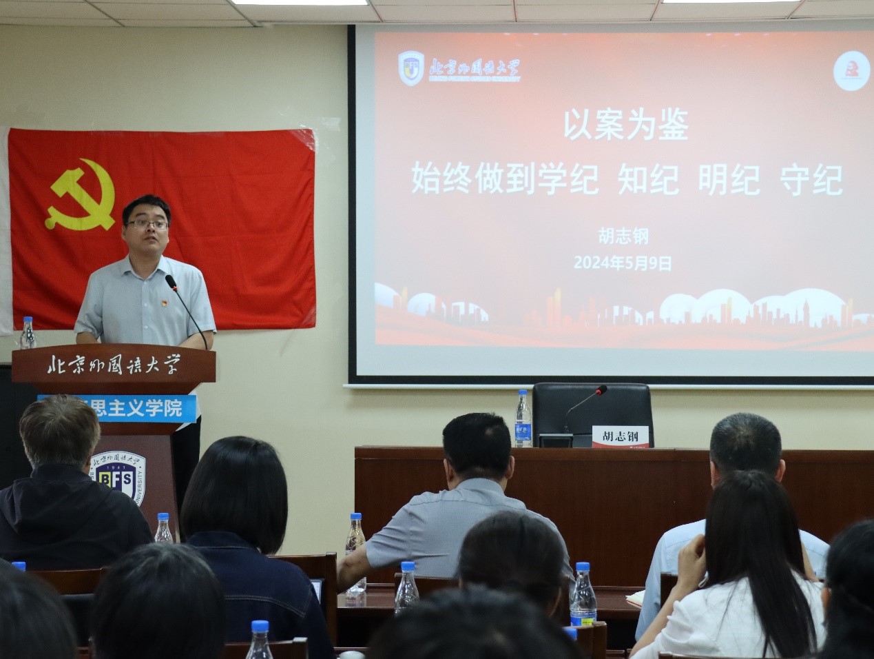 为深入学习领会习近平总书记关于党纪学习教育的重要讲话和重要指示批示精神,5月9日上午,beat365手机版官方网站党总支开展党纪学习教育集中研学活动,邀请beat365手机版官方网站党委副书记、纪委书记胡志钢做专题报告。党总支书记祝和军主持会议。