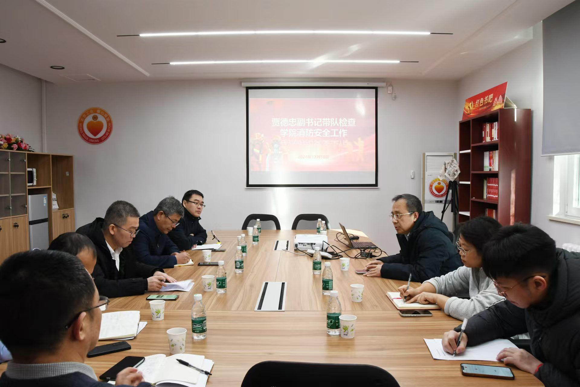 18日,学校党委副书记贾德忠带队检查走访了beat365手机版官方网站,并召开了马院、国关学院、继续教育学院等参加的消防安全会议。会上,贾德忠副书记对beat365手机版官方网站的消防安全工作给予了高度肯定和表扬。