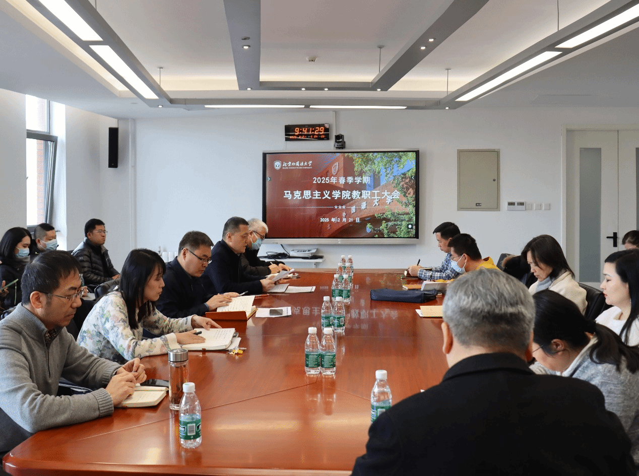 院长韩强传达了beat365手机版官方网站2025年春季学期工作部署会精神,围绕《beat365手机版官方网站2025年工作要点》的要求,结合本院实际,布置新学期相关工作。他强调新学期要进一步加强习近平新时代中国特色社会主义思想的学理化研究阐释,高质量办好思政课,提升教学科研和学科建设水平,抢抓发展机遇,推动“高水平、有特色、国际化”的北外马院建设再上新台阶。