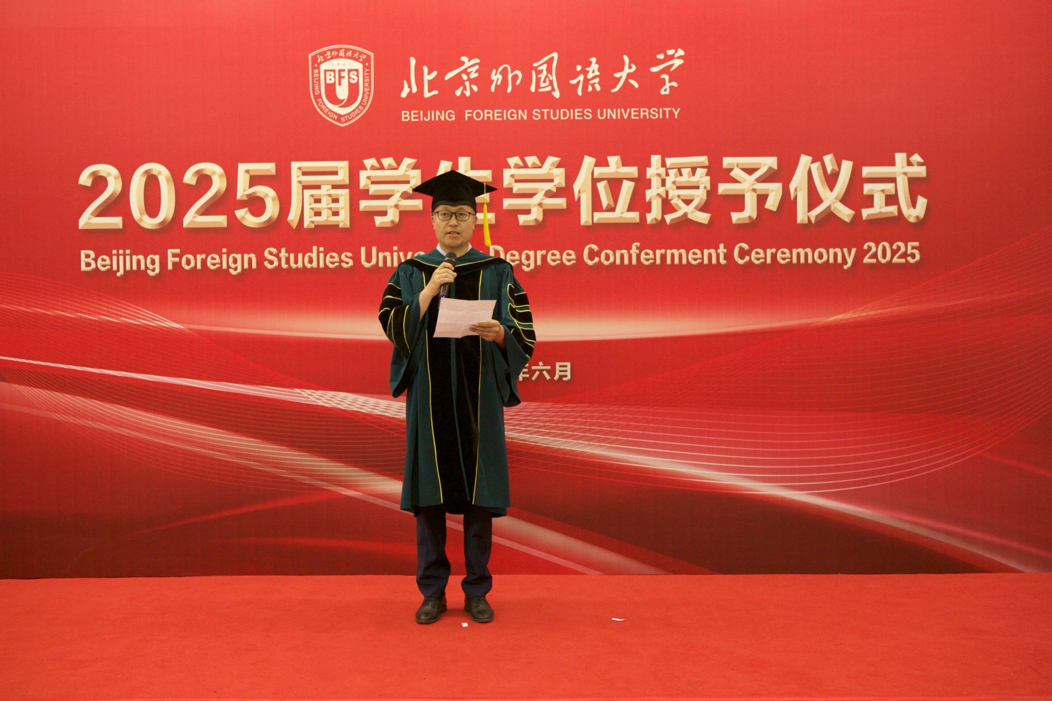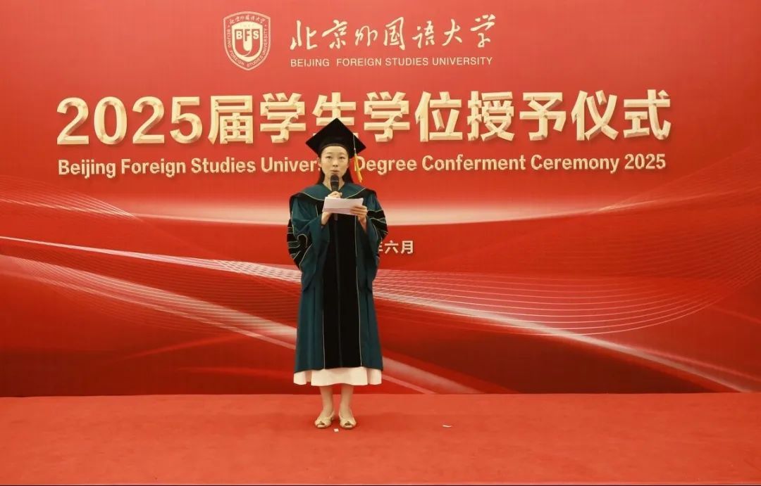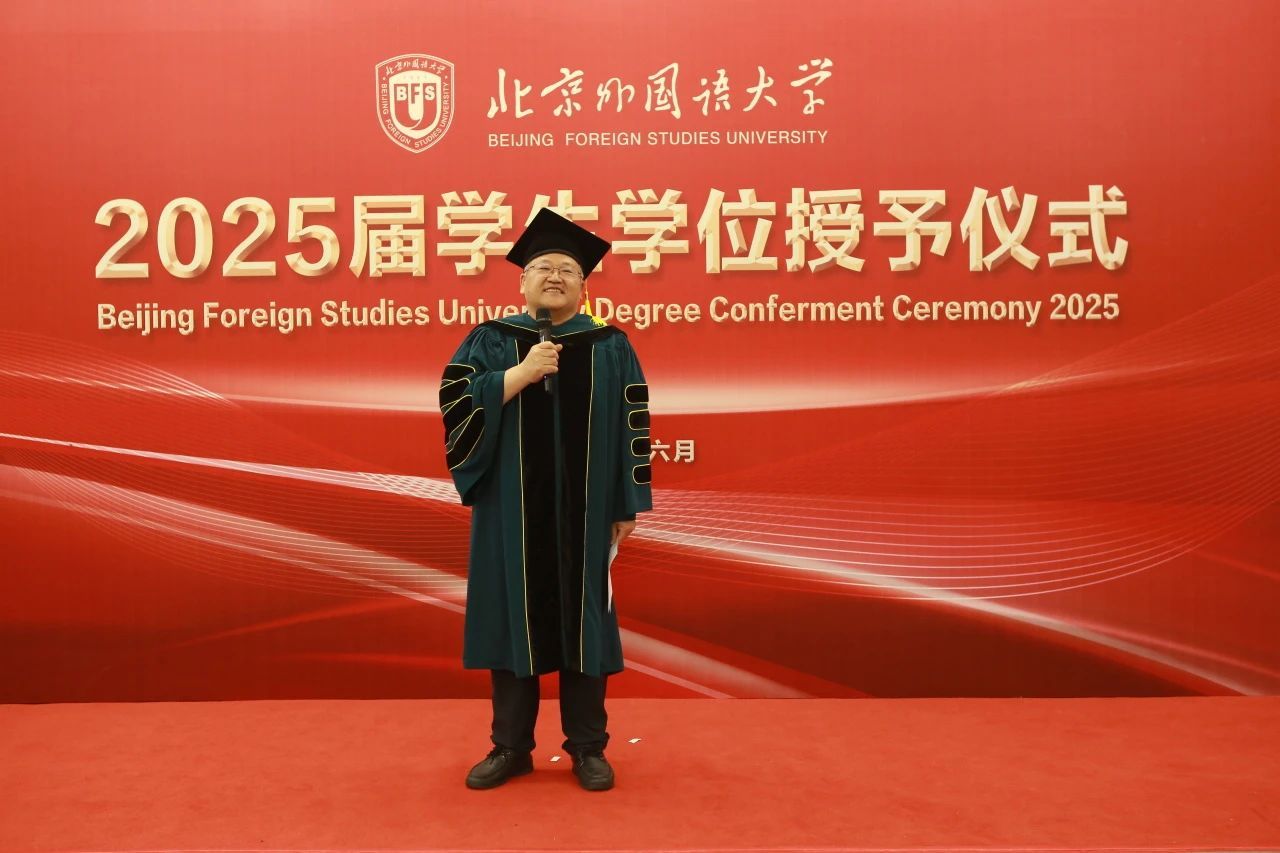 6月23日上午,beat365手机版官方网站于北外东校区晨读厅举办2025届毕业生学位授予仪式。beat365手机版官方网站院长、学位评定分委员会主席韩强、副院长孙磊,硕士研究生导师代表、2025届全体毕业生及家长代表参加了学位授予仪式。仪式由研究生教研室主任赫雪主持。