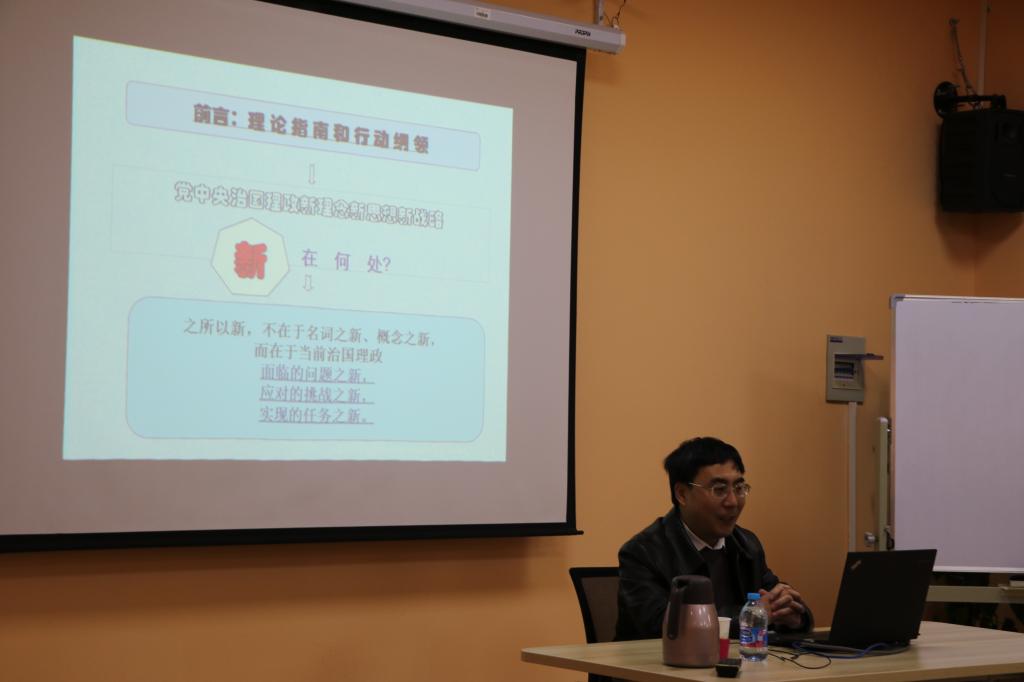 郝清杰博士以“深入理解党中央治国理政新理念新思想新战略”为题,详细讲解了以习近平同志为核心的党中央在新的时代背景下治国理政方面所体现出来的新理念新思想新战略。郝清杰指出,“新”,不是名词之新,概念之新,而是面对的问题之新,面临的时代任务之新,应对的挑战之新。“新”在以中华民族的伟大复兴为历史使命,在“五位一体”的战略布局、“四个全面”的治国方略下展开的中国特色社会主义的伟大实践,实现了马克思主义视野中世界观和方法论的统一,是马克思主义中国化的最新成果。
