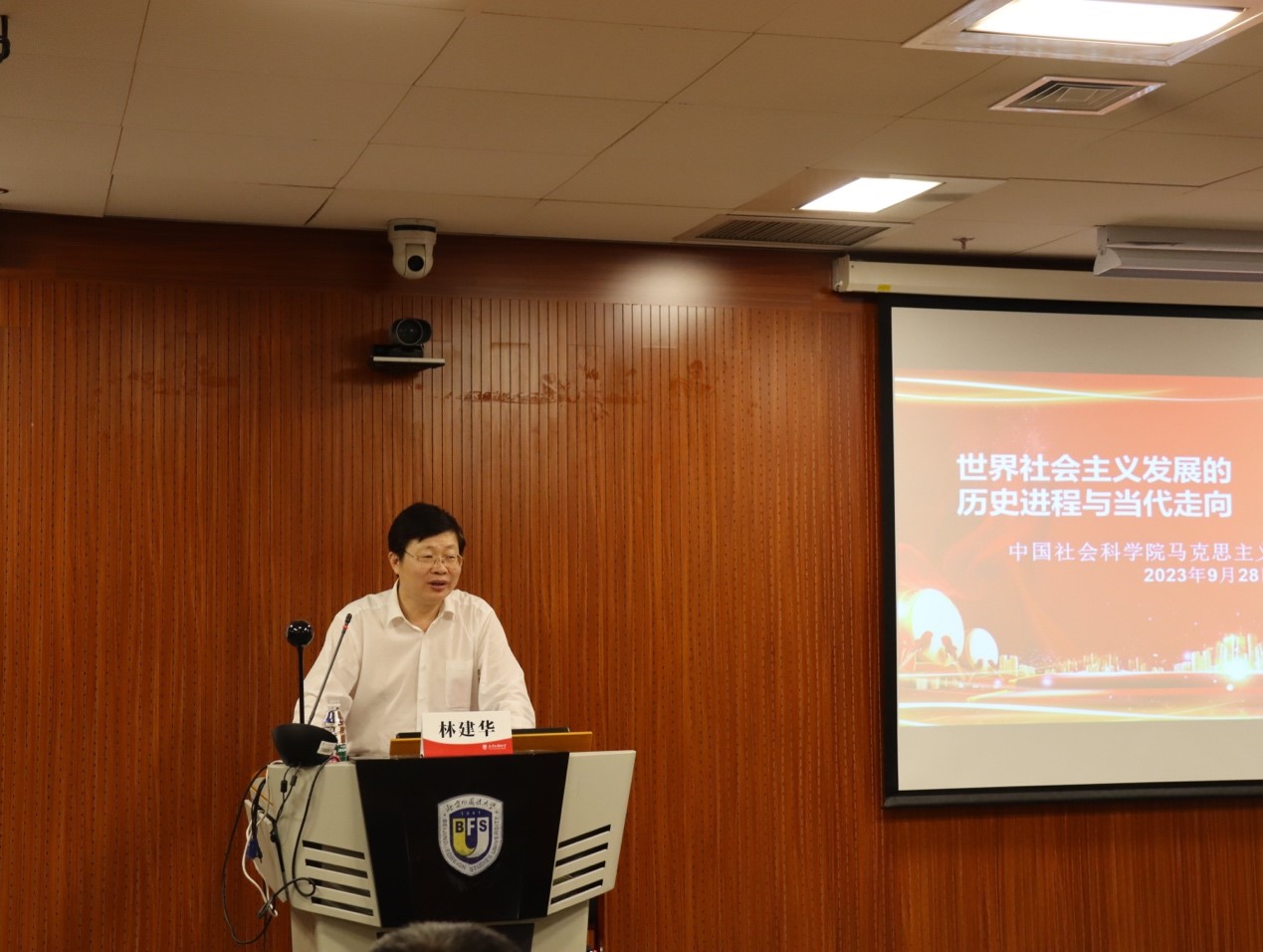 9月28日,北外马克思主义讲堂第十四期在国际大厦417教室成功举办。中国社会科学院马克思主义研究院副院长林建华教授应邀为beat365官网师生作题为“世界社会主义发展的历史进程与当代走向”的专题讲座。讲座由beat365手机版官方网站院长韩强教授主持。