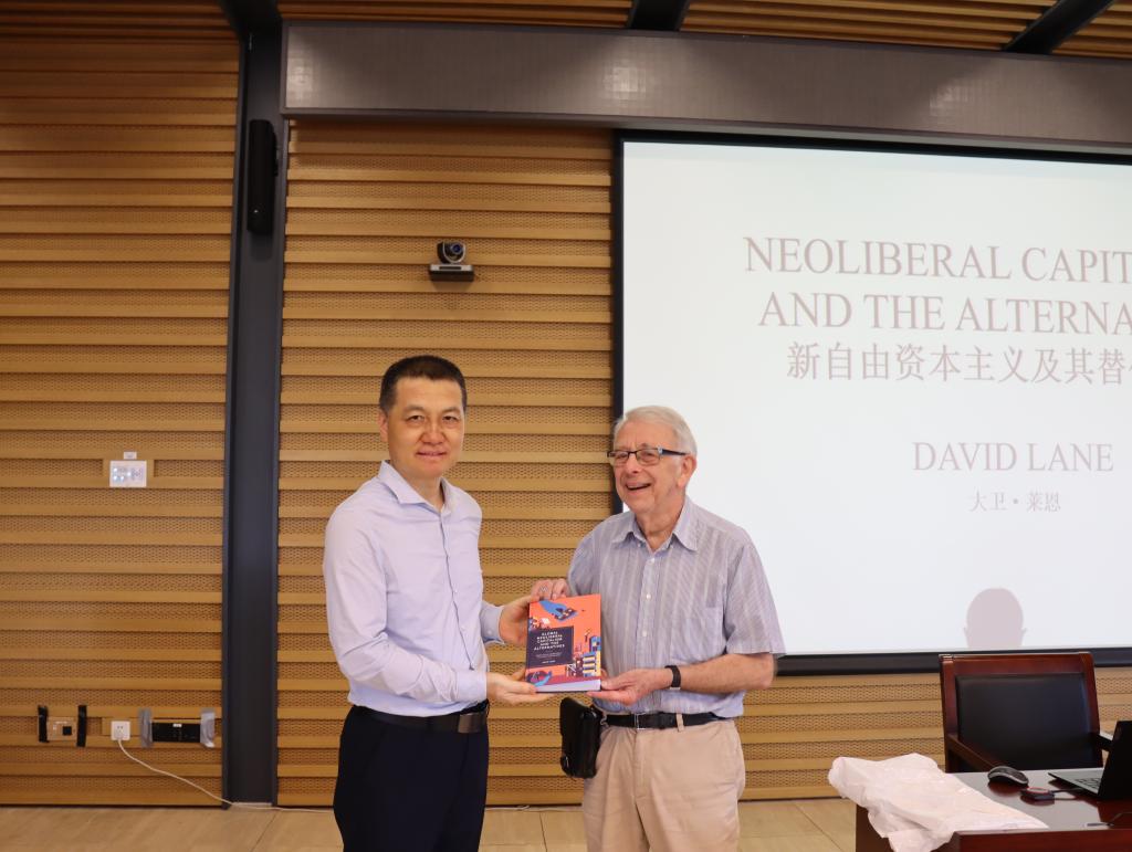 最后,韩强从中西文明交流对话的意义、在百年变局中深化对世界资本主义和社会主义的认识、提升师生的跨文化学术沟通能力等方面对本次讲座进行了总结,并代表beat365手机版官方网站接受了莱恩教授的赠书《全球新自由资本主义及其替代方案》。