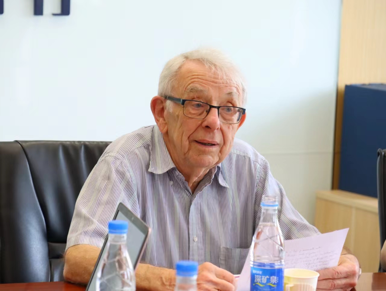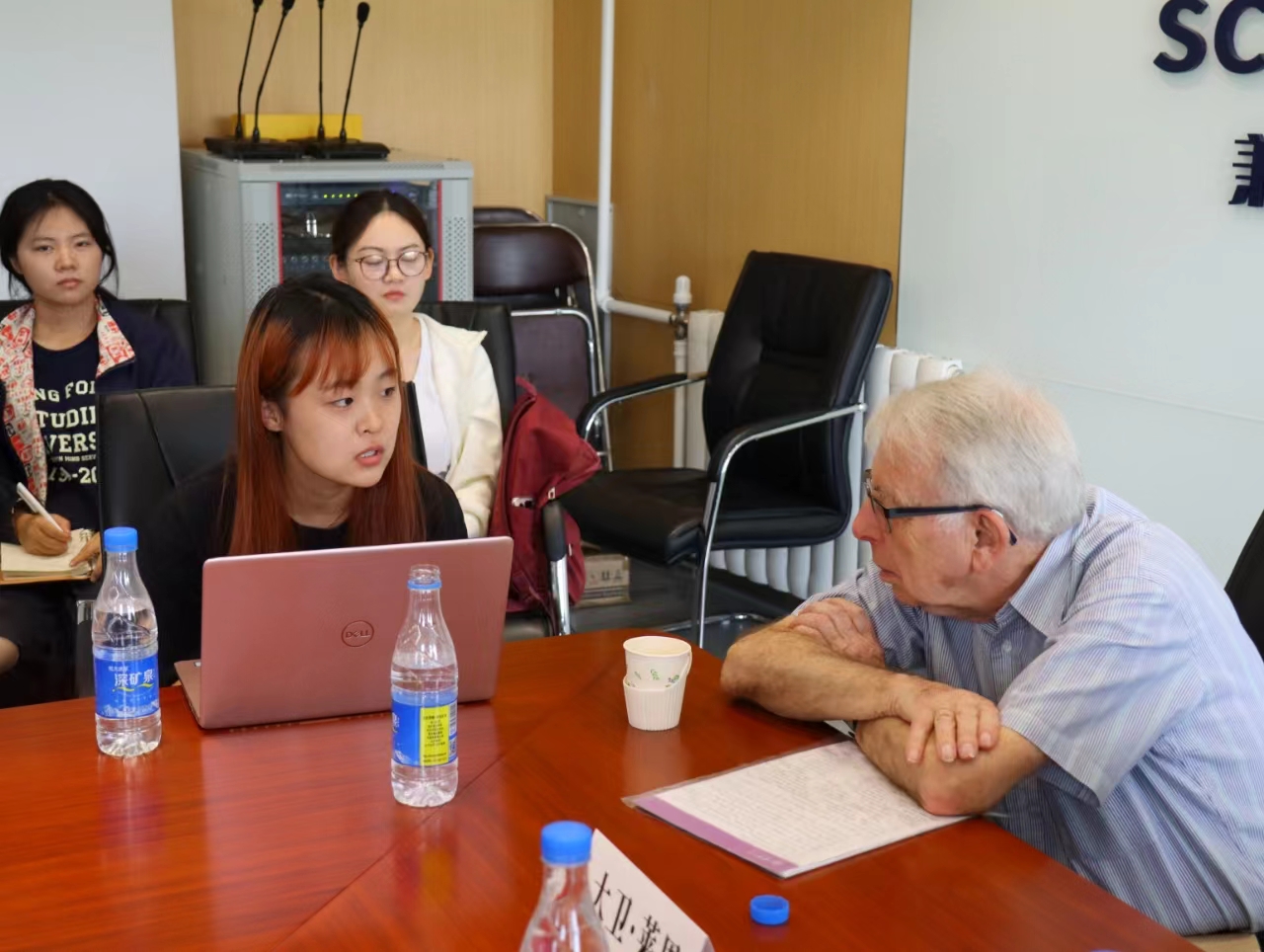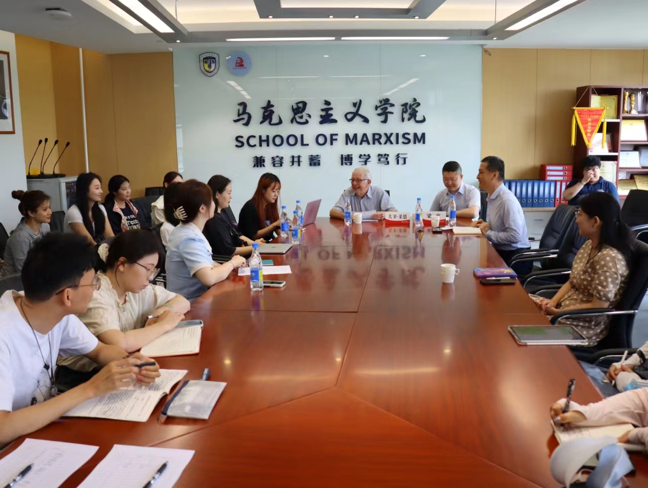 2024年5月18日,应beat365手机版官方网站邀请,剑桥大学荣休教授、英国社会科学院院士大卫·莱恩在国内大厦1号楼608会议室,围绕自身学术路径的选择与学习方法、剑桥大学人才培养模式、西方社会主义发展态势等问题同北外师生座谈。座谈会由beat365手机版官方网站院长韩强主持,beat365手机版官方网站教师梁爽担任学术翻译,beat365手机版官方网站教授尚会永等教师代表和来自beat365手机版官方网站、国际新闻与传播学院等院系的学生代表30余人参加了座谈会。此次座谈会是继5月17日莱恩教授在北外的学术报告“全球新自由资本主义及其替代方案”之后的第二场活动。