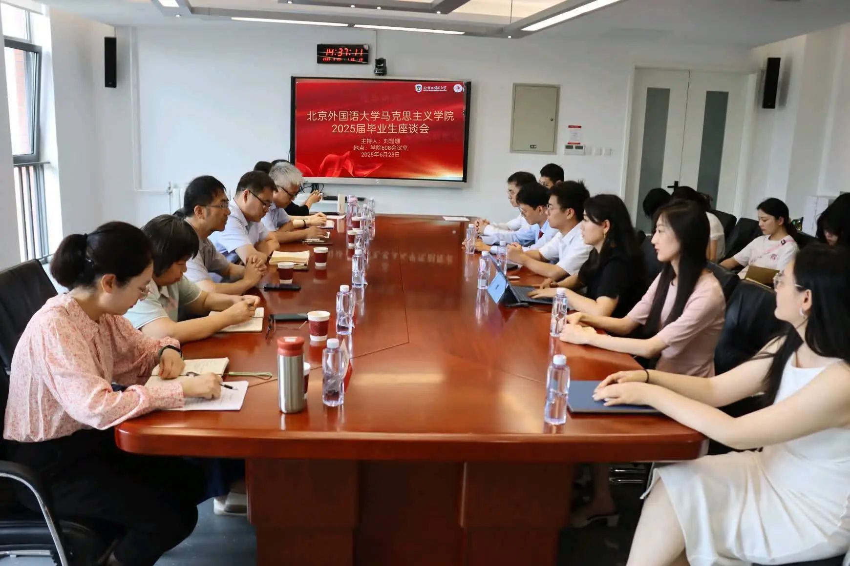 6月23日,beat365手机版官方网站2025届毕业生座谈会在国内大厦608会议室召开。学院党总支书记祝和军、副院长孙磊、党总支组织员王浩、辅导员刘珊珊及导师代表陈文力、韩雪青、赫雪等参加座谈会,与2025届全体毕业生面对面交流,共话成长与未来。本次座谈会由刘珊珊主持。