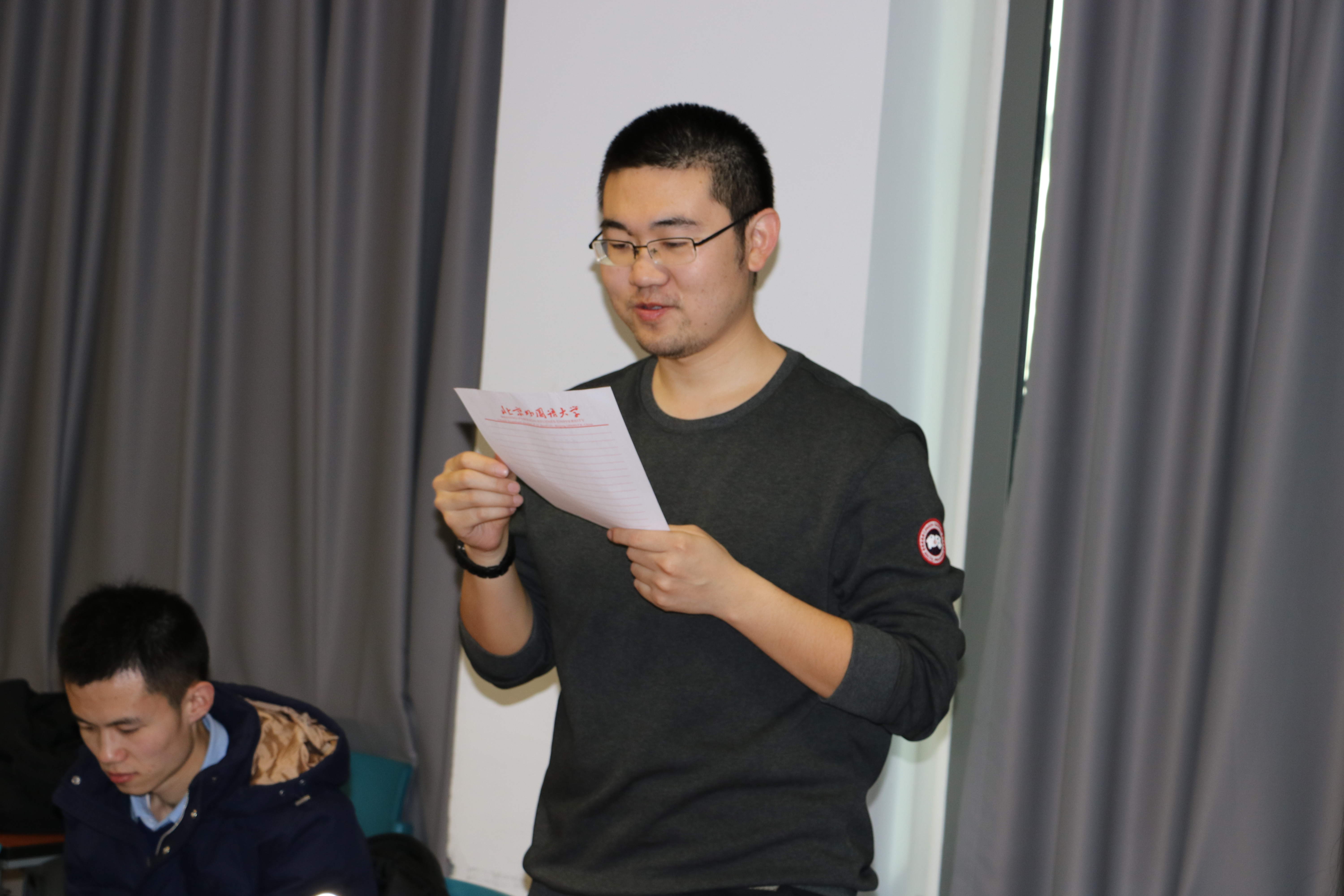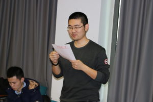 2017年 12月23日下午3点,beat365手机版官方网站于北外大厦441室召开研究生党支部预备党员转正大会。本次会议由研究生支部书记何宜儒主持,党员、预备党员、入党积极分子出席会议。主要讨论接收预备党员王健男、赵明明同志为正式党员等相关事宜。