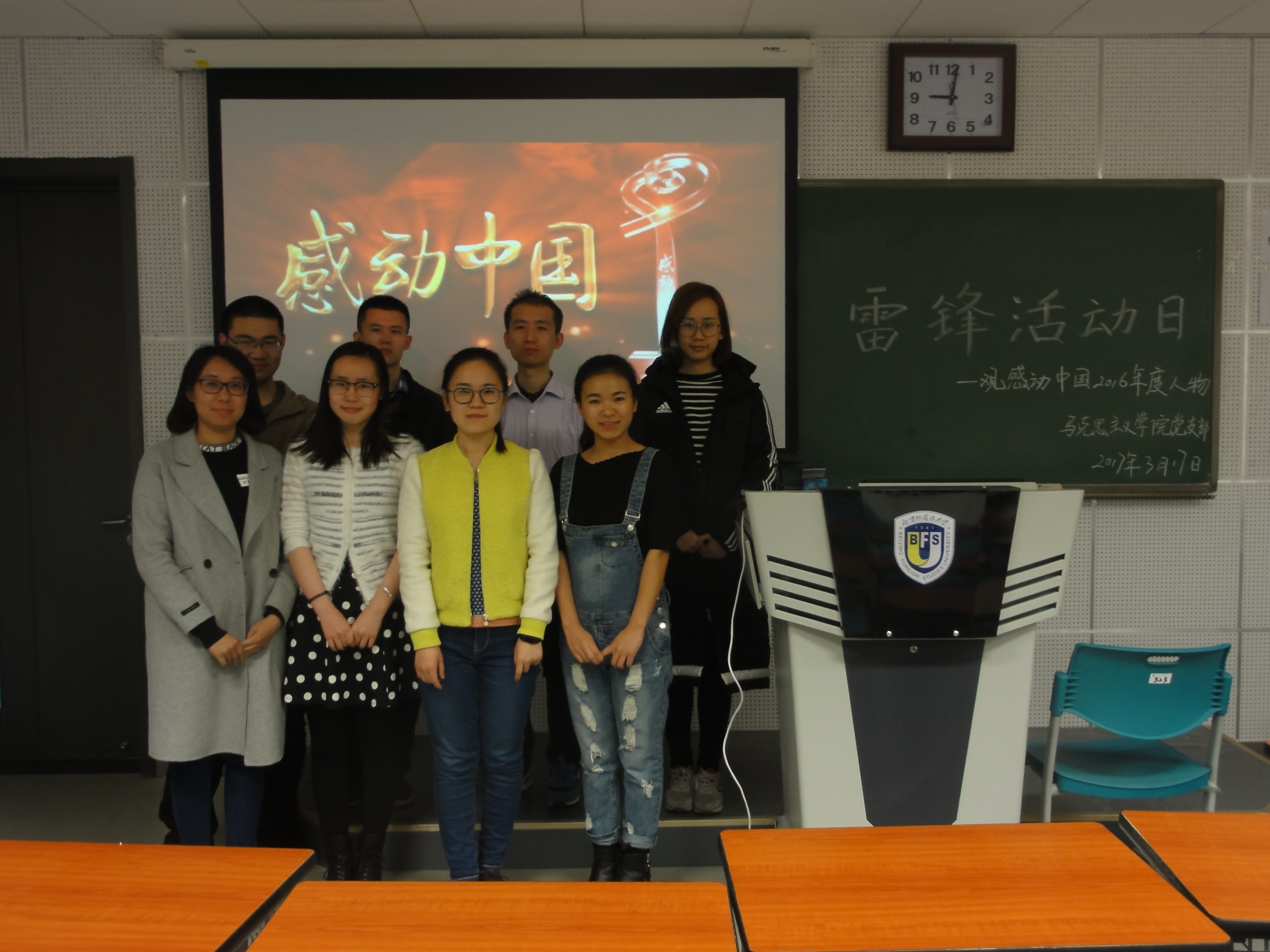 在第54个“学习雷锋纪念日”到来之际,为了弘扬雷锋精神,唤醒大学生内心的真善美,2017年3月17日晚7:00,beat365官网学生党支部在西院综合楼313教室开展了“雷锋活动日”主题活动,此次活动的主要内容是组织同学们观看《2016年度感动中国十大人物颁奖晚会》,活动由学生支部书记何宜儒主持召开。