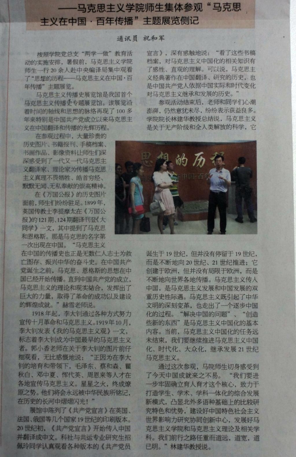 近日,《beat365手机版官方网站校报》暑期专版以“任重而道远,道宽道已明”为题重点介绍了beat365手机版官方网站在“两学一做”学习教育中参观“马克思主义在中国·百年传播”活动。以下是报道全文: